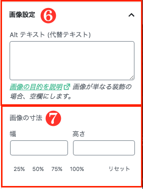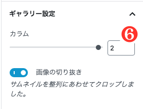 右メニューに一列に並ぶ枚数を設定する[カラム]❻が表示されるので、数値を入れる。