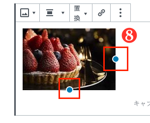選択した画像の右と下に表示される青いポイントをドラックしてもサイズ変更が可能です。