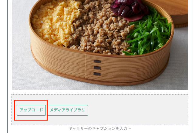 挿入した1枚目の画像下に、[アップロード]が表示されるので、2枚目を追加する。