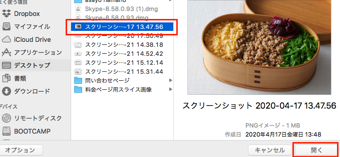 保存先を表示し、該当の画像を選択すると、編集エリアに挿入されます。