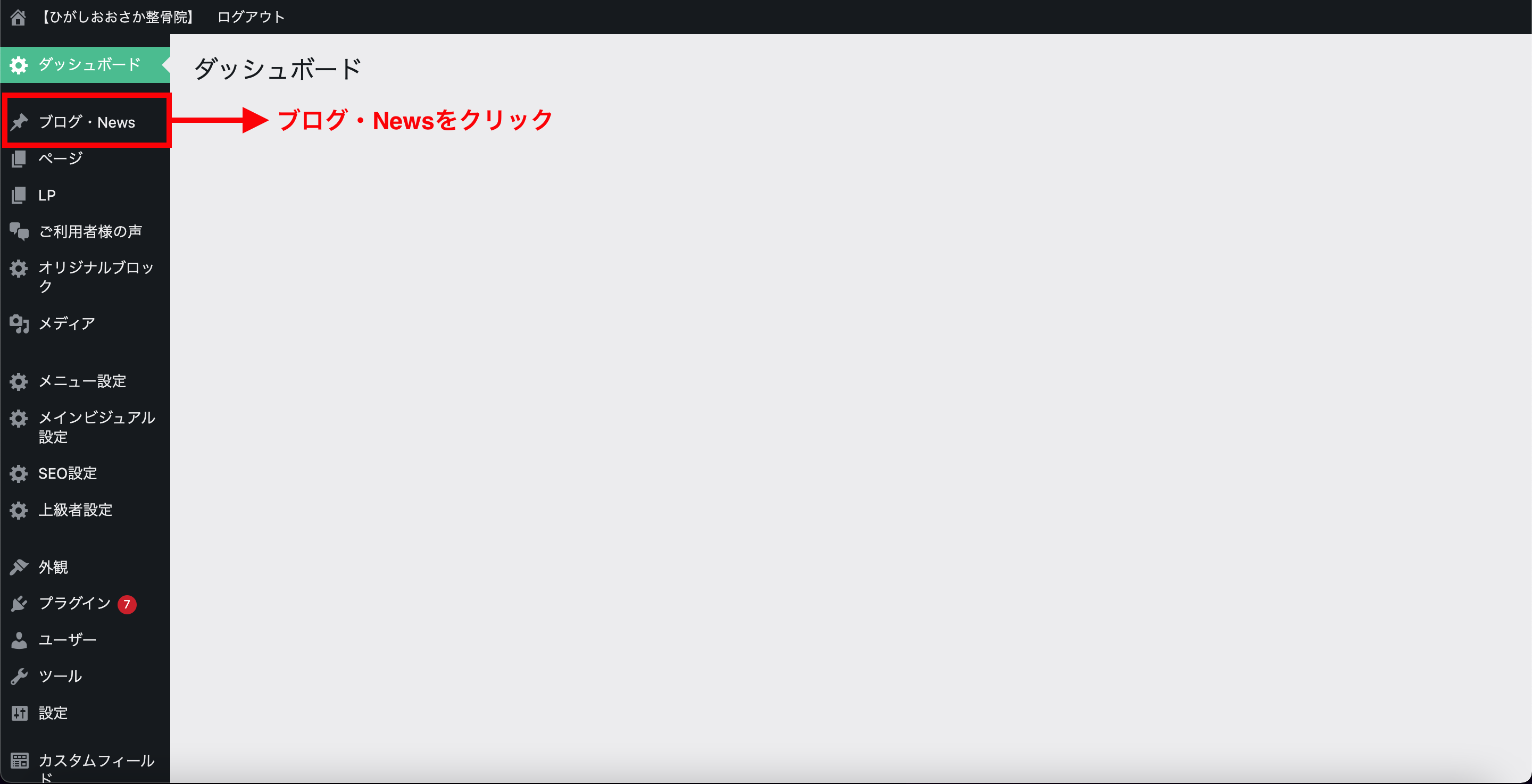 ①管理画面サイドバーの『ブログ・News』をクリックします。