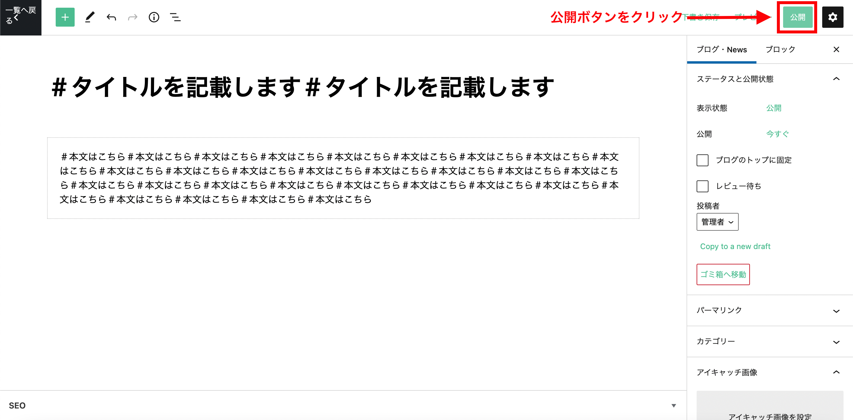※アイキャッチ画像を設定したい場合は下記の記事をご確認ください。