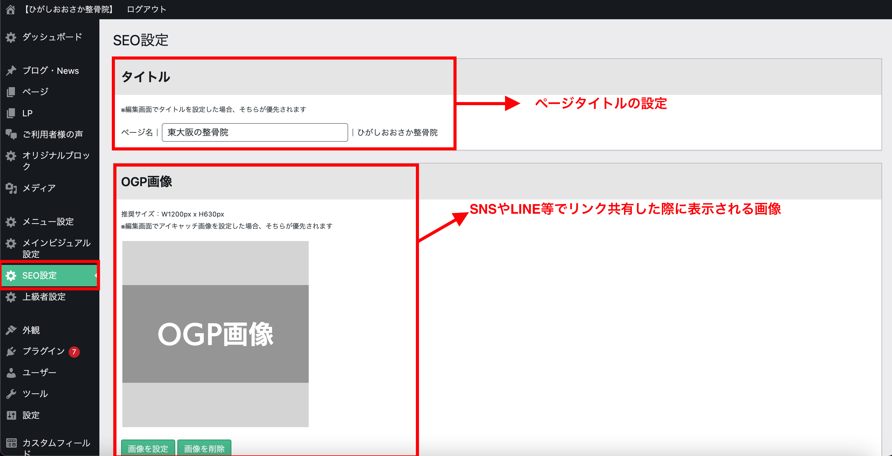管理画面左サイドバーにあるSEO設定の説明をいたします。