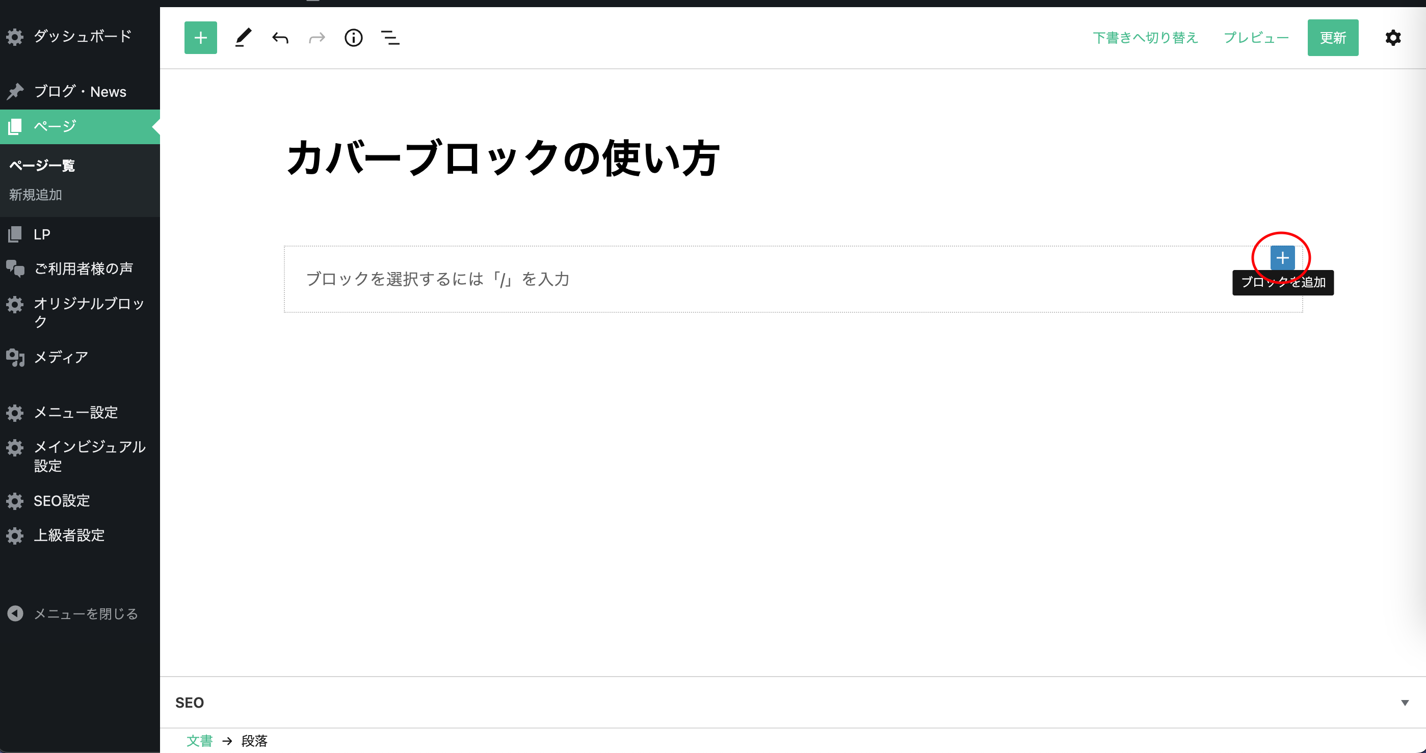 ※タイトルの箇所でエンターを押すとブロックが表示されます。