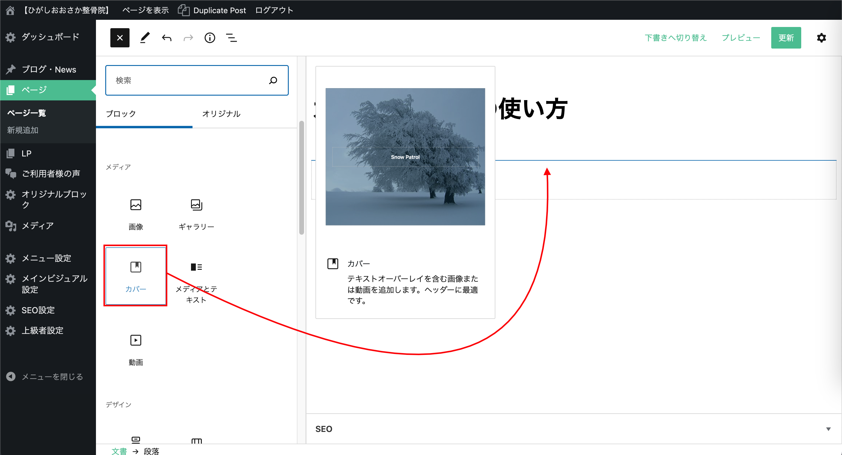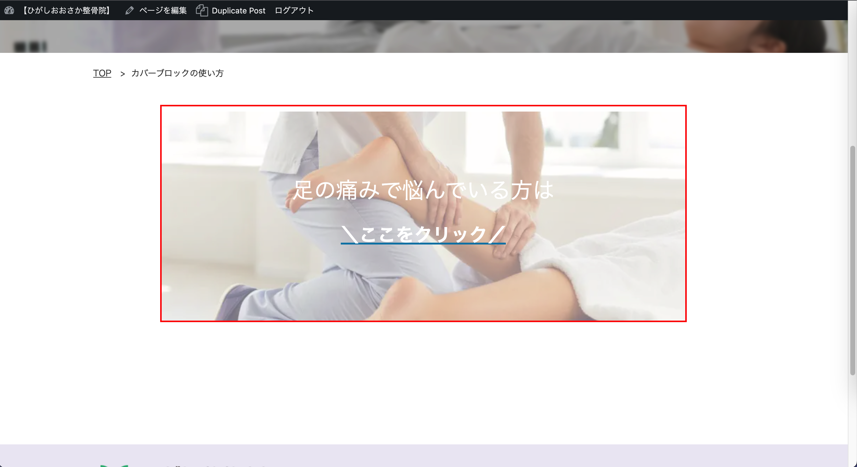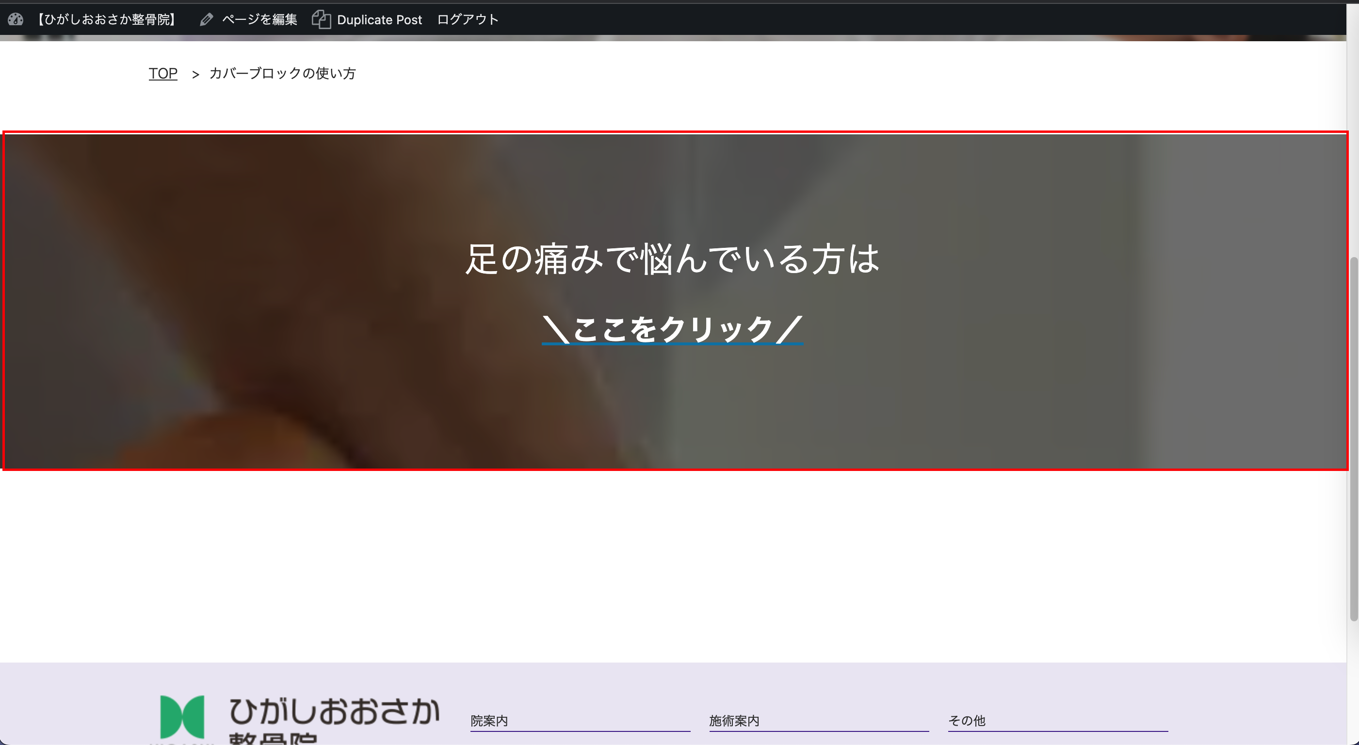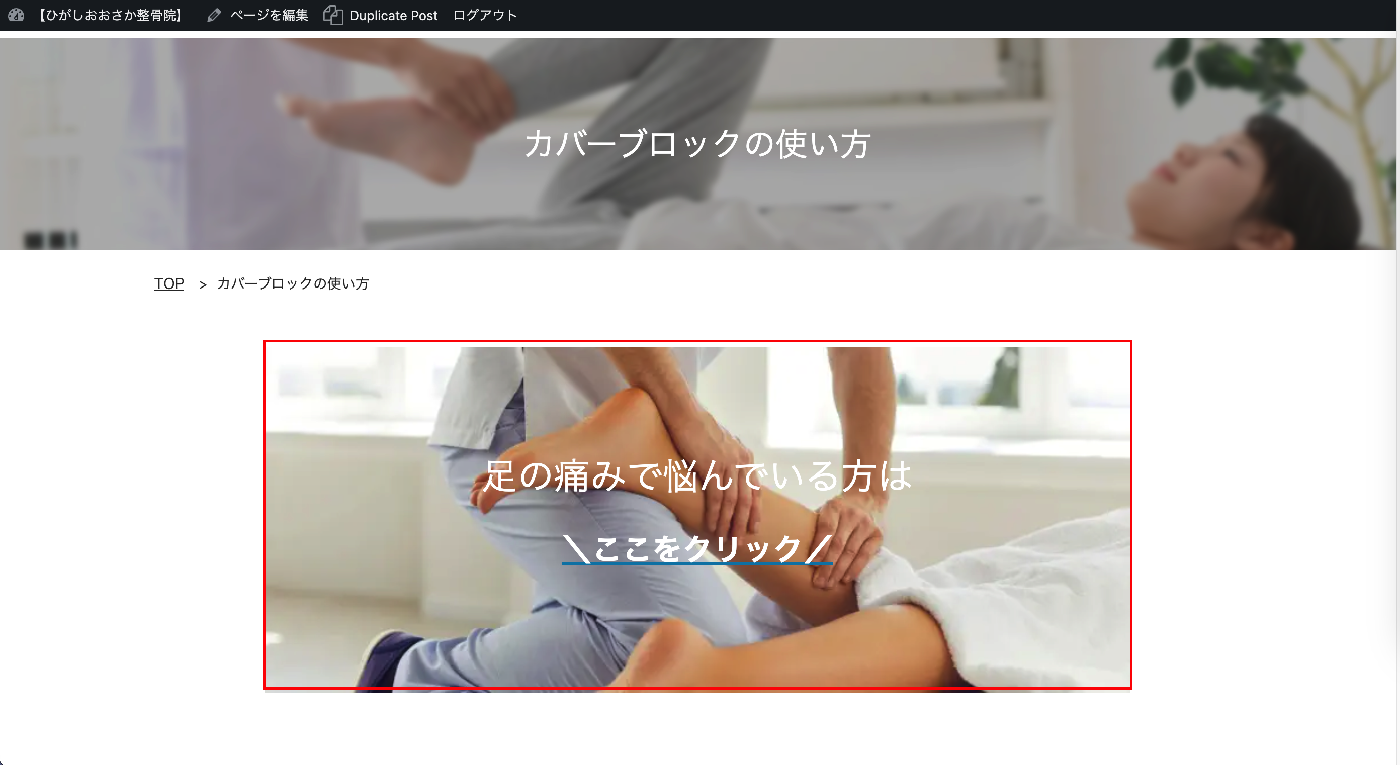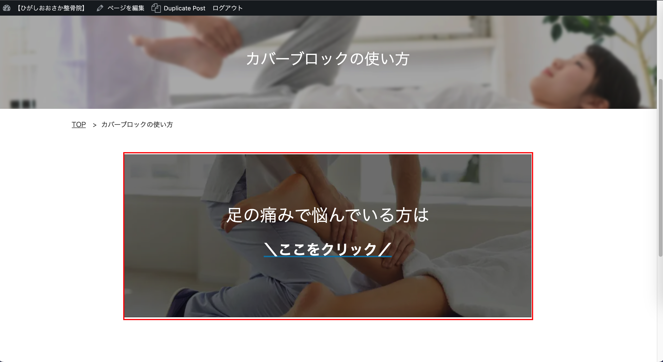カバーブロックの使い方は多種多様です。今回は写真を背景に挿入してバナー風なものを作成してみます。