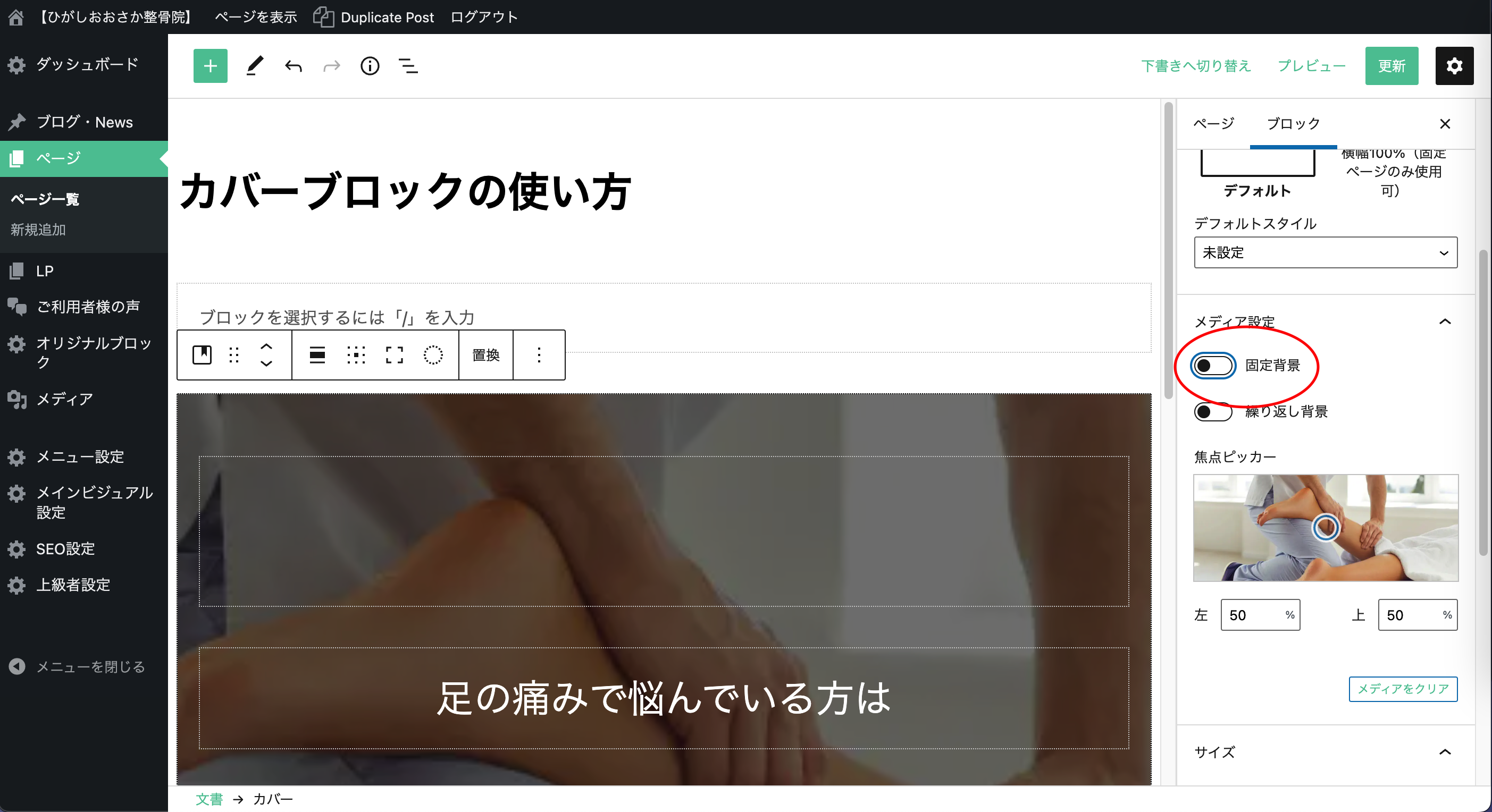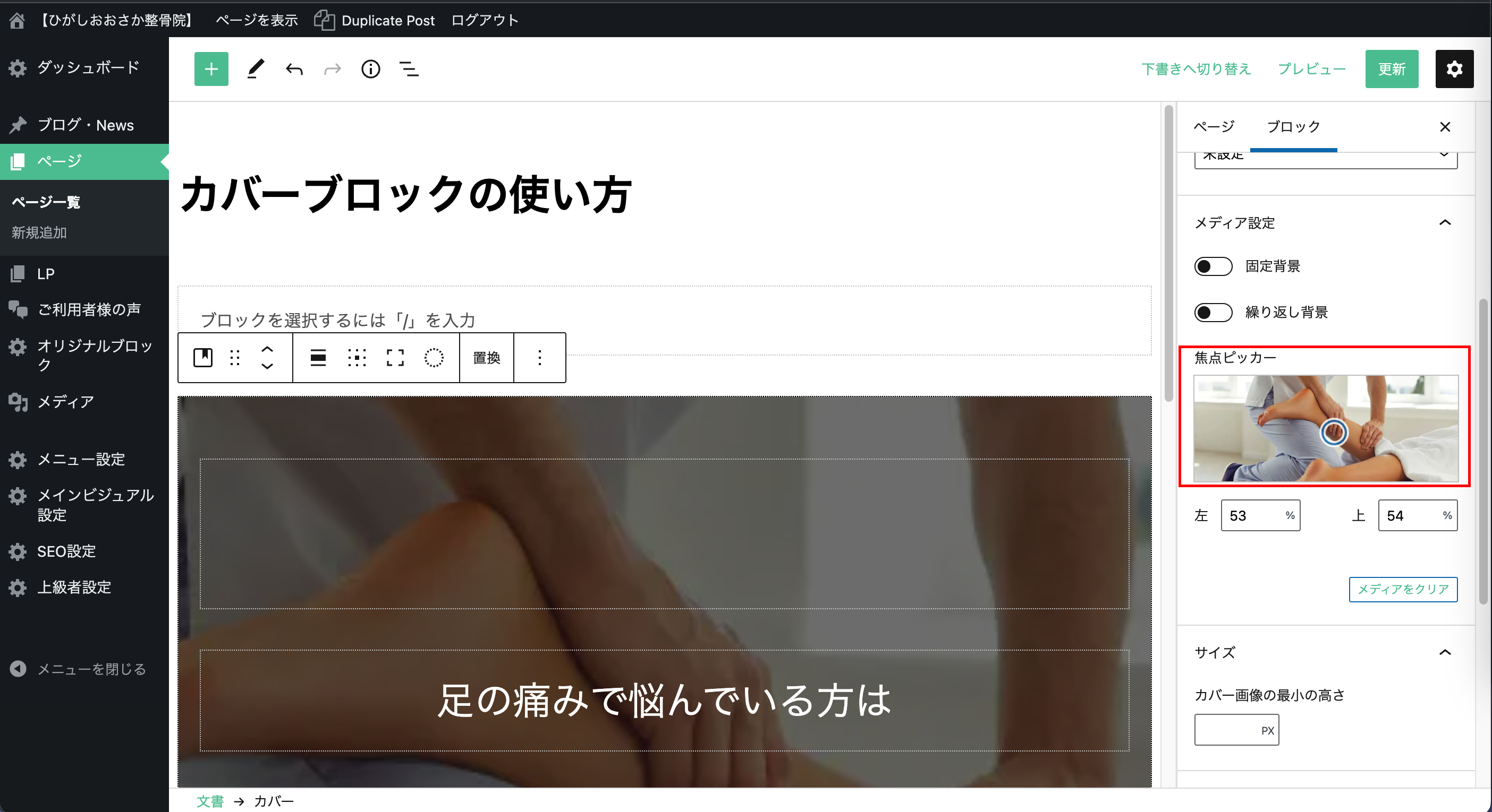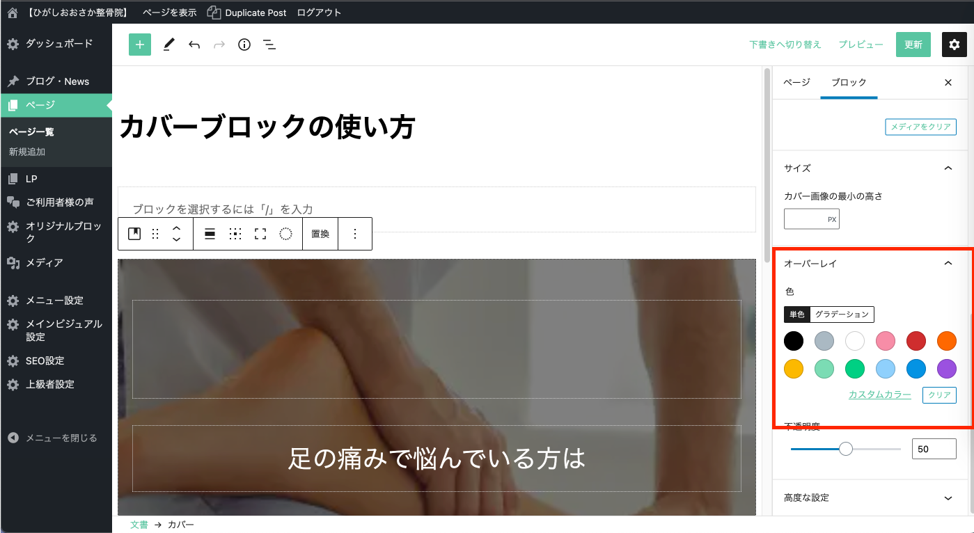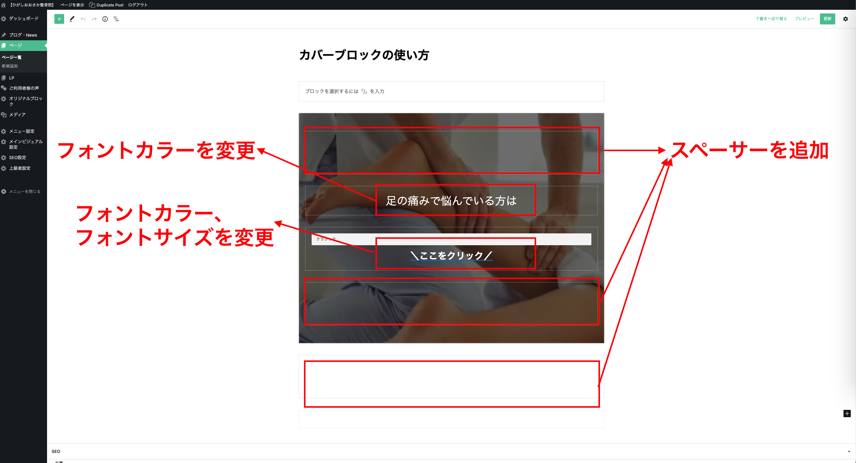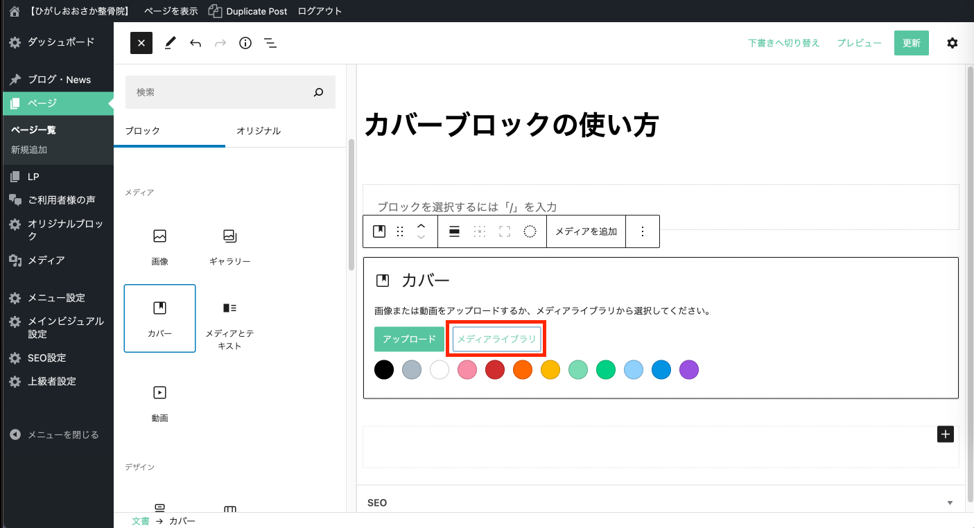 カバーブロックの使い方は多種多様です。今回は写真を背景に挿入してバナー風なものを作成してみます。