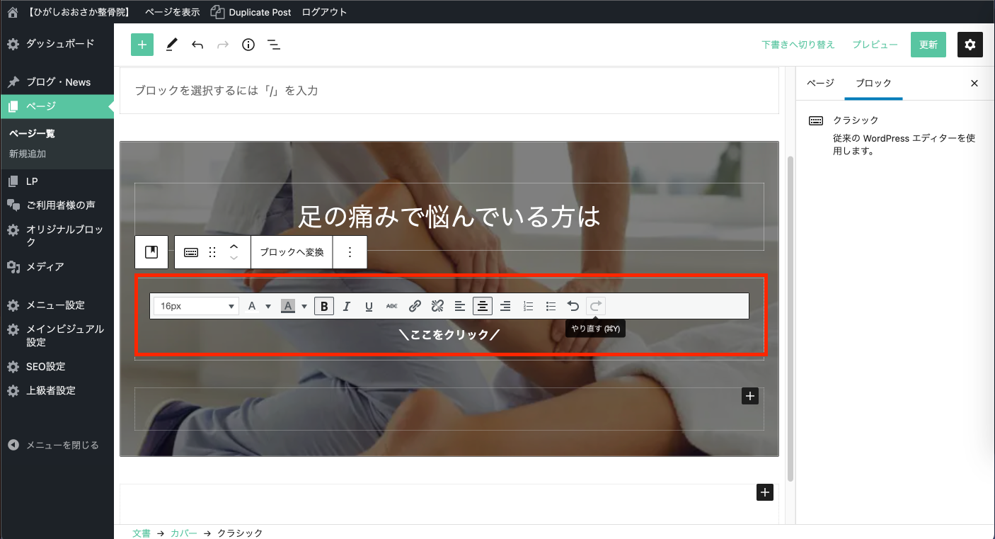 ※クラシックブロックの使い方は、下記リンクをご確認ください。