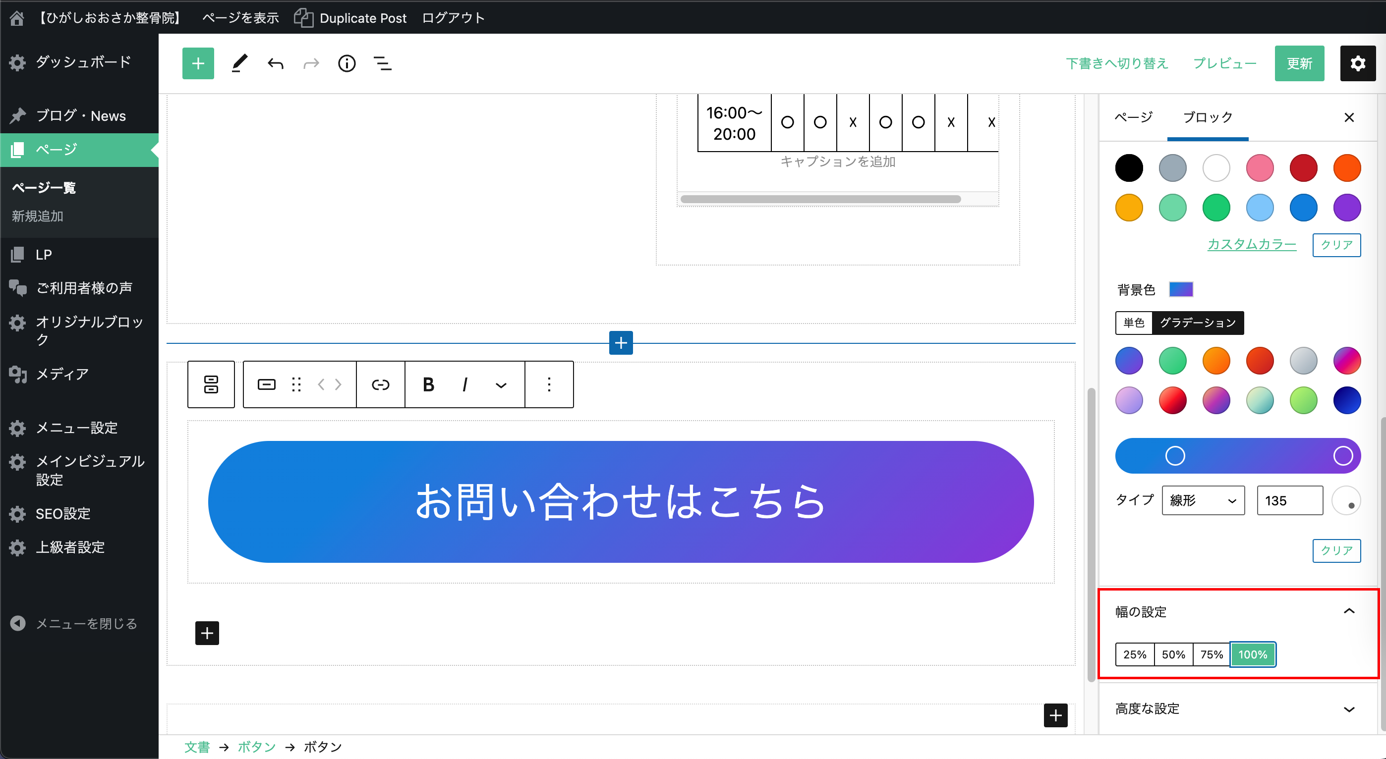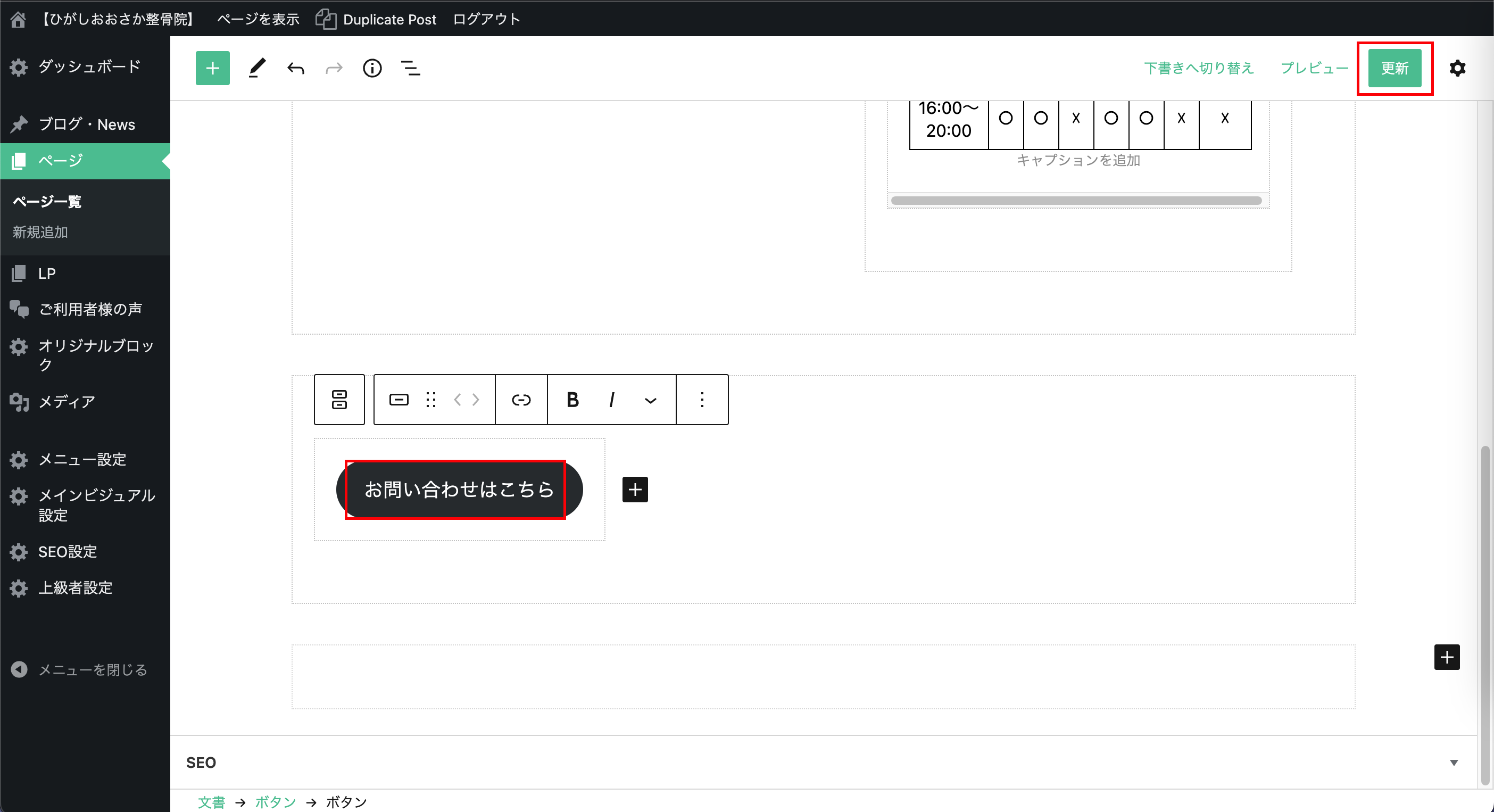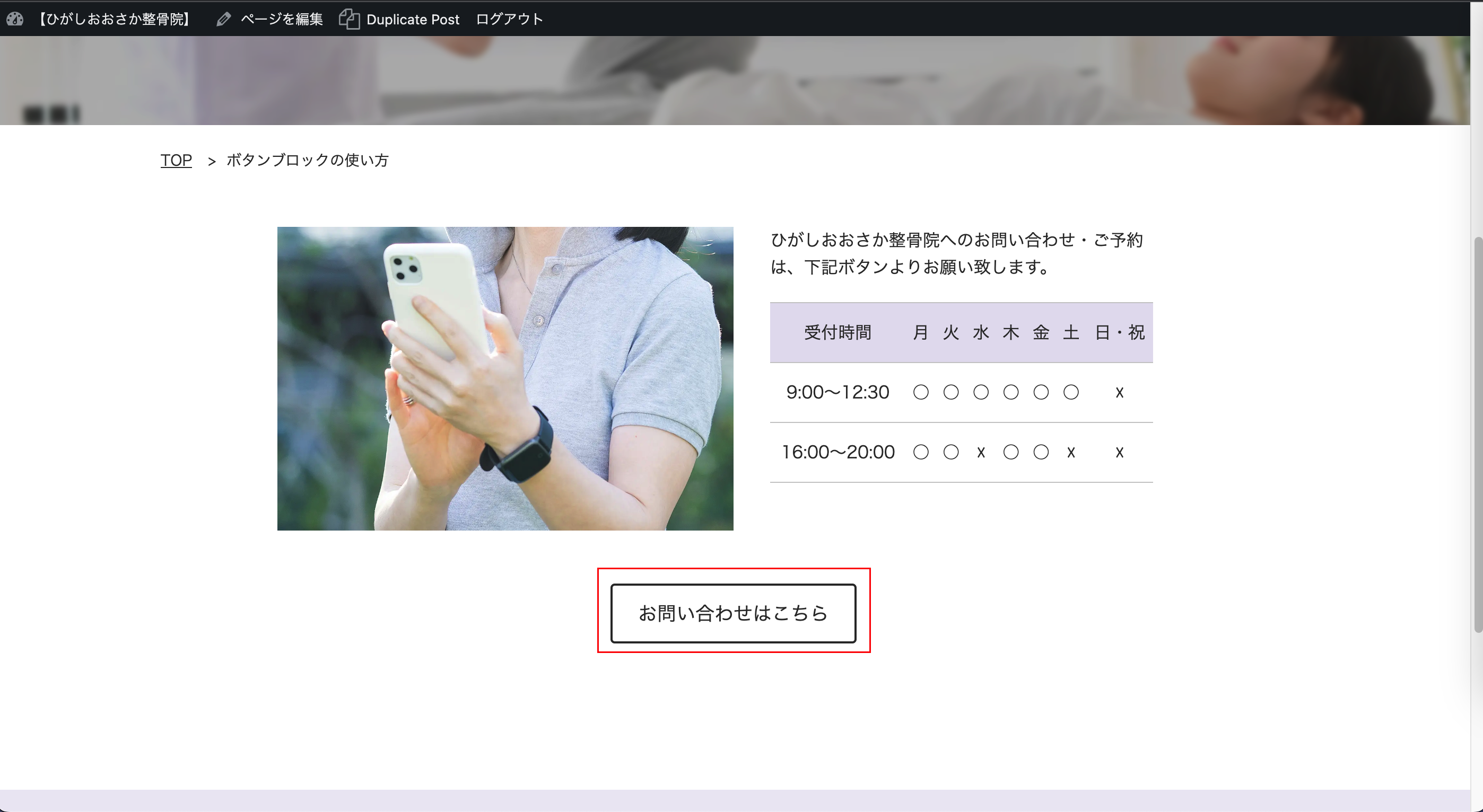以上がボタンブロックの解説となります。ボタンブロックを活用し、ホームページユーザーを導くことで集患に取り組んでいきましょう。