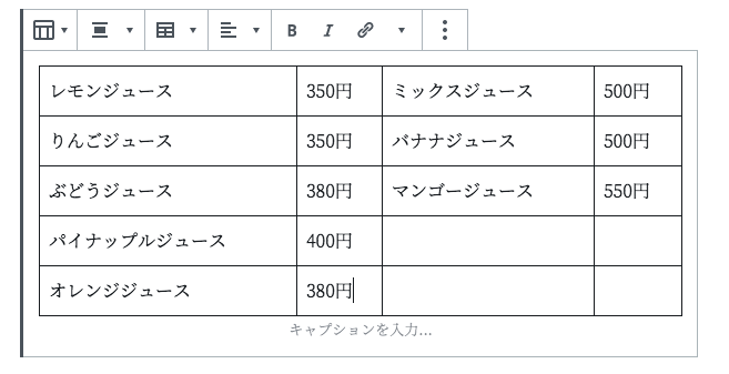 [ヘッダーセクション]表組にヘッダー列を追加します。