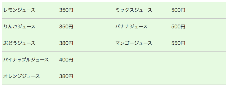 [固定幅のテーブルセル]各列を同幅に設定できます