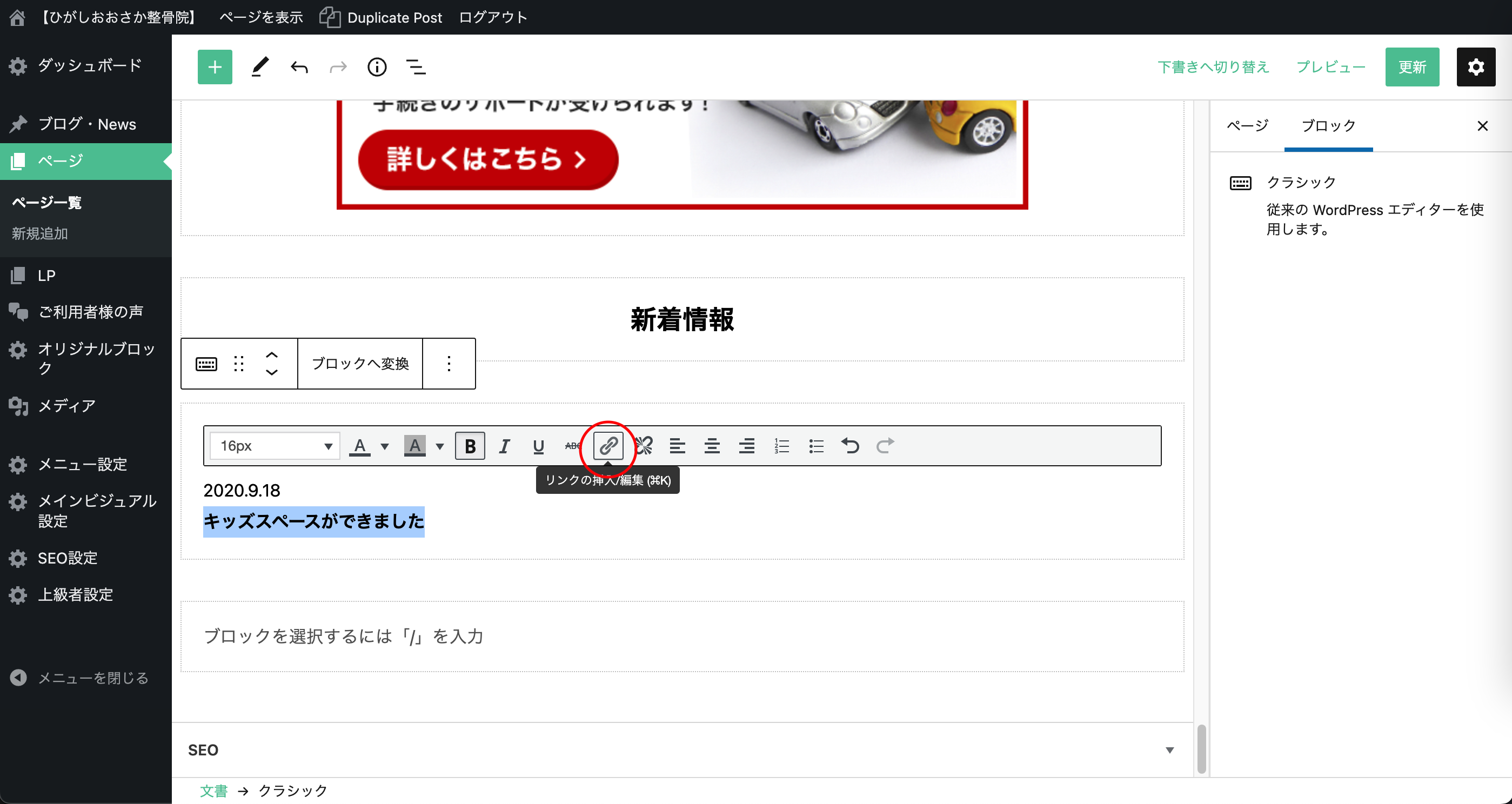 9,リンクボタンを押してコピーしたURLを貼り付けます。