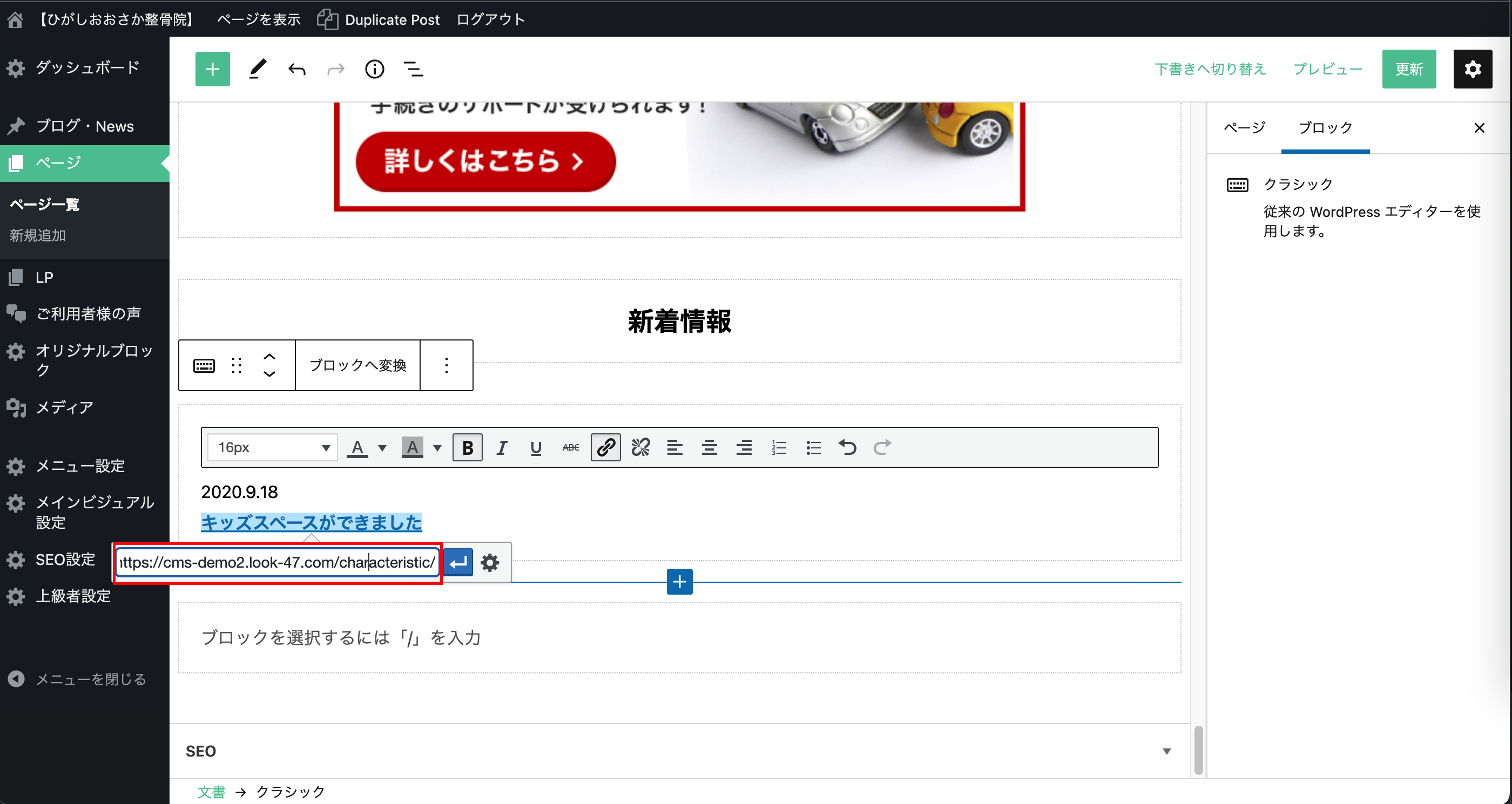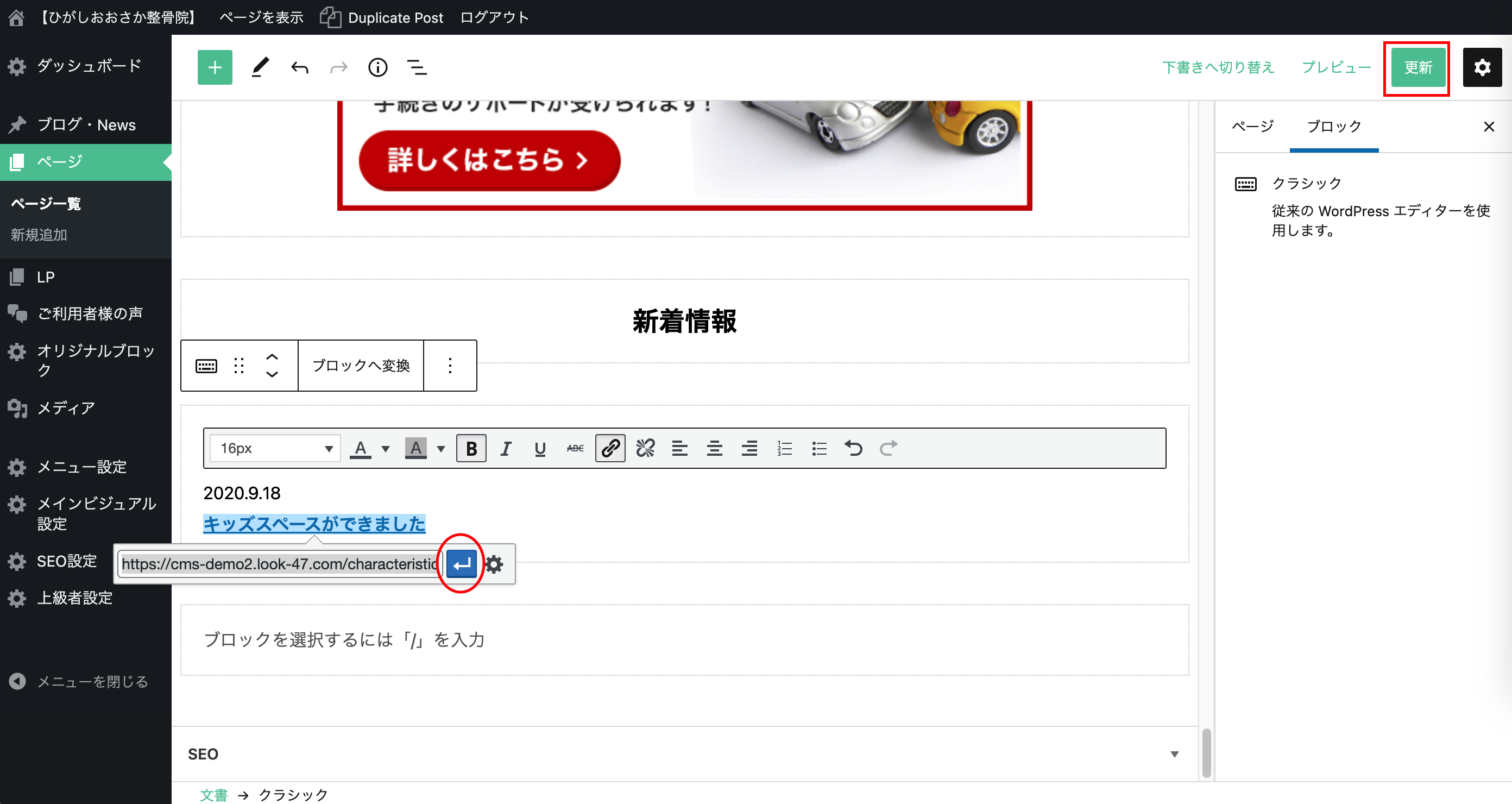 ※リンク先の設定は、見出しブロックのみ可能となります。